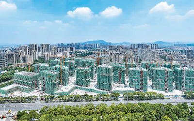 浙江宁波余姚市城区堰头安置房项目投资约21亿元,建成后可提供安置房源1073套、保障性租赁住房184套,将让更多居民实现安居梦。图为日前,建设人员在该项目现场加紧施工。